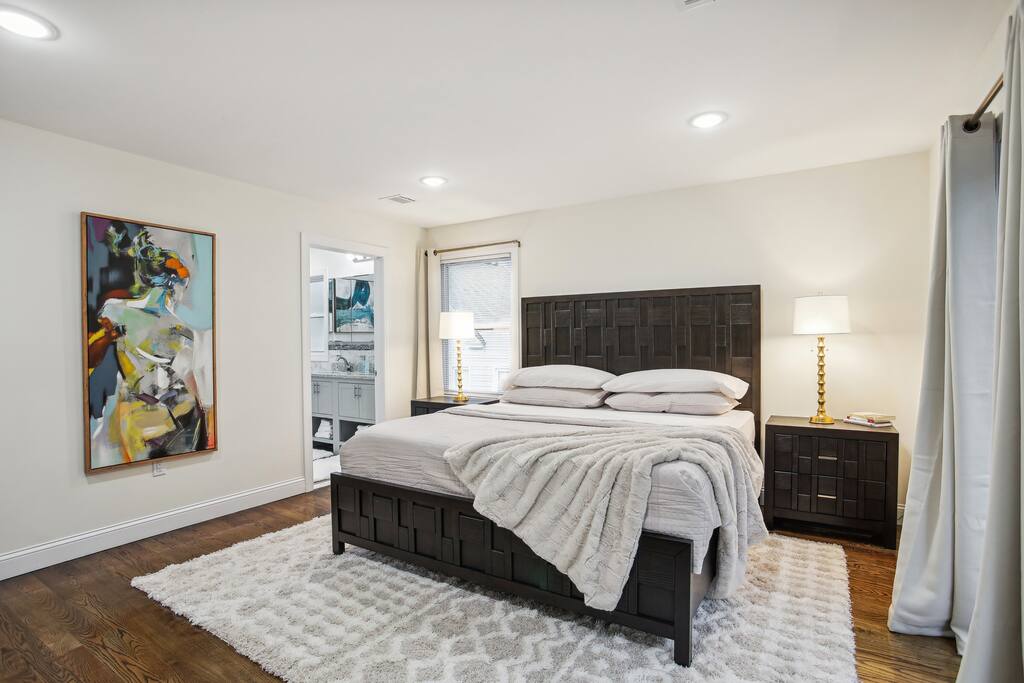Key Features: Living Spaces: - Unwind in the cozy outdoor patio deck, perfect for sipping morning coffee or enjoying evening conversations. - A dining set accommodating up to six guests invites you to share meals and create lasting memories together. Kitchen: - The fully equipped kitchen boasts a convenient island with seating for two, making meal preparation a breeze. - Stay connected with loved ones or catch up on work using the fast WiFi available throughout the house. Convenience: - Leave your worries behind with the included washer and dryer, complete with laundry detergent for your convenience. - Plug in and stay powered up with plenty of wall outlets thoughtfully placed throughout the house. - 1 garage parking spot and 1 driveway parking spot. Bedroom Retreats: Master Suite: - Enjoy the luxury of a private bathroom for the master bedroom, providing an extra level of comfort and convenience. - The spacious walk-in closet offers ample storage for all your belongings. - Recharge on the plush king-sized bed with high-quality bedding. - Entertainment options abound with a flat-screen TV at your disposal. - Private outdoor patio deck Second Bedroom: - This room features a queen-sized bed adorned with plush bedding for a restful night's sleep. - A generously sized closet ensures that your wardrobe stays organized and easily accessible. - Enjoy entertainment on a flat-screen TV. Third Bedroom: - Ideal for families or groups, this room offers a full bed and a twin bed, both with sumptuous bedding. - Store your belongings in the spacious closet for easy access. - Entertainment options are available with a flat-screen TV. Prime Location: - Just a 15-minute drive to Harrison Path, NJ Penn Station, and EWR Airport, making transportation a breeze. - Sports and entertainment venues such as American Dream, MetLife Stadium, Red Bull Arena, Prudential Center, NJ PAC, and State Fair Meadowlands are all within a convenient 15-minute drive. - 25-minute drive to New York City and Madison Square Garden! Experience the best of Kearny from this exceptional retreat. Book your stay today and create lasting memories in the heart of New Jersey!
